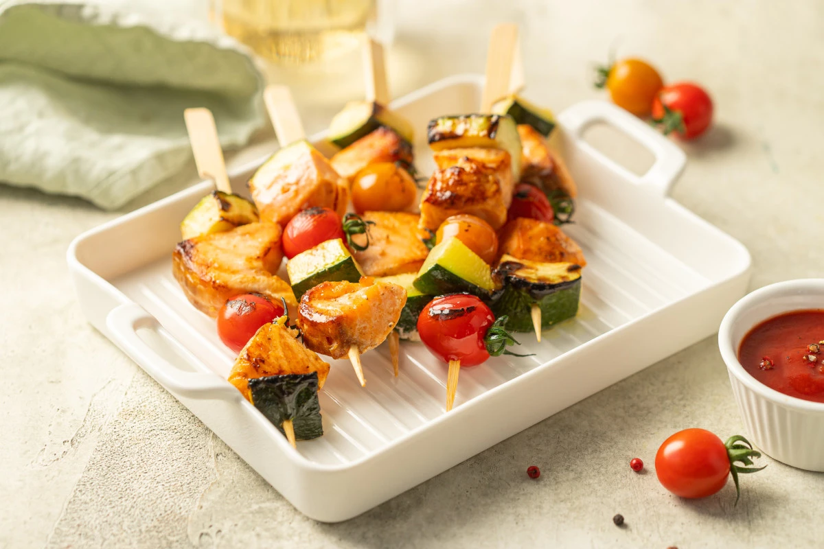 Шашлычки из красной рыбы очень просто приготовить в духовке, если нет возможности выехать на природу и жарить их на углях.