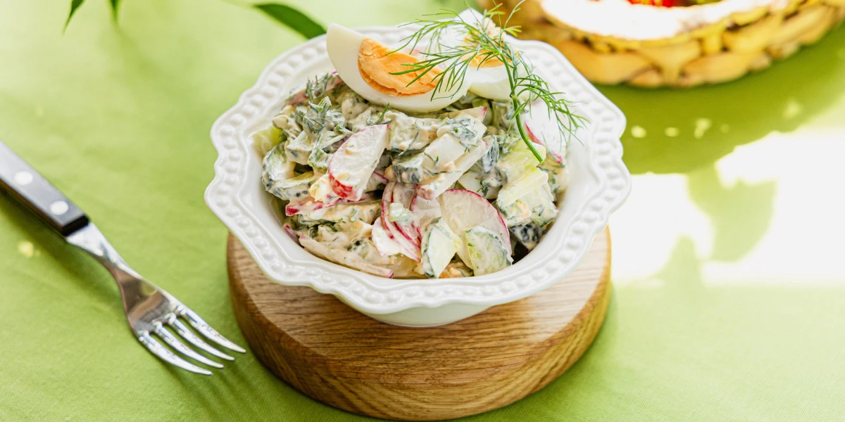 Салат с редисом, яйцом и огурцом