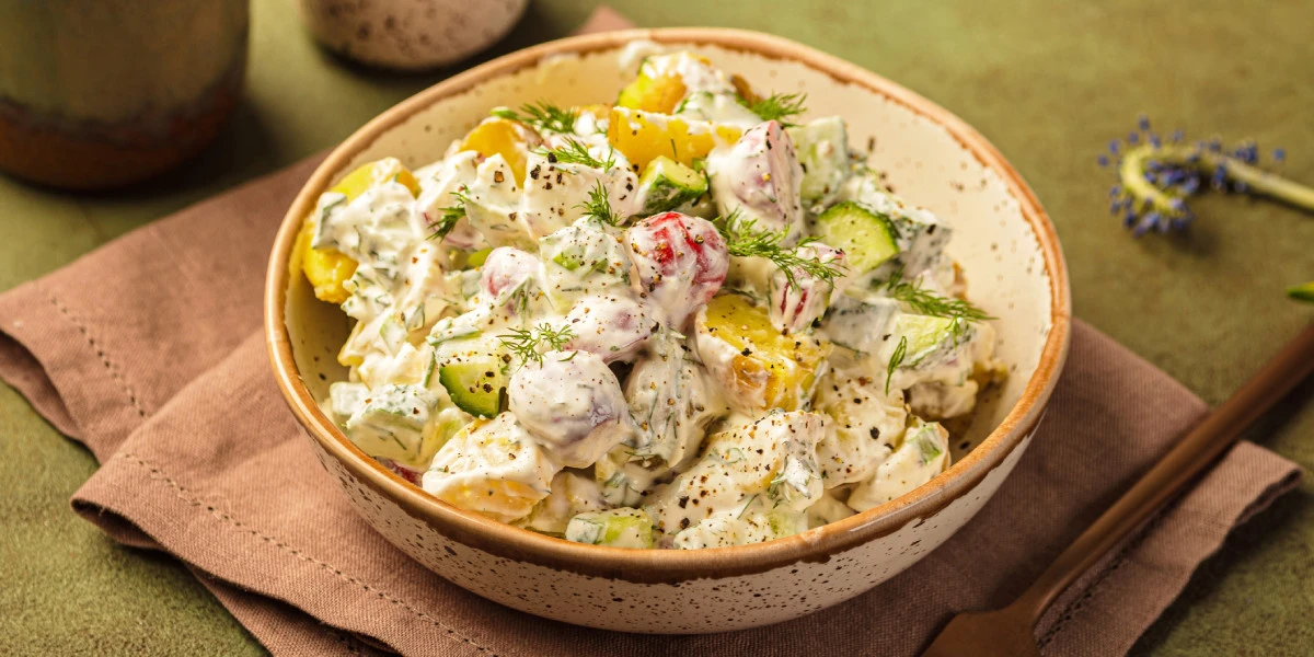 Картофельный салат с редисом, огурцами и зеленью