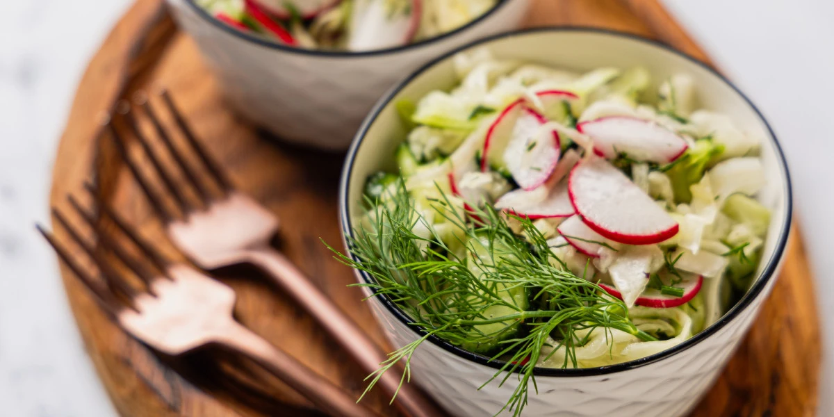 Салат с редисом, молодой капустой и огурцом