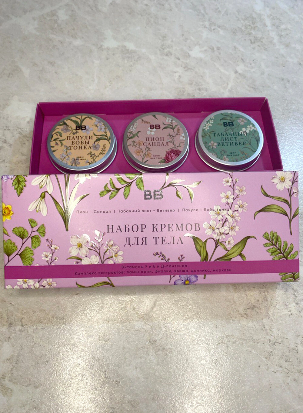 Набор кремов для тела «Пион-Сандал, Табачный лист-Ветивер, Пачули-Бобы тонка», 3 шт.