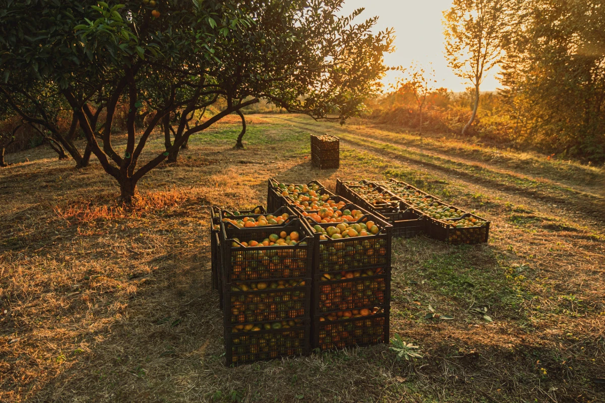 Большой сад поделён на три участка, на каждом есть бригадир и команда примерно из 15 человек. В день один человек может собрать 27 ящиков по 20 кг, а это 540 кг мандаринов.