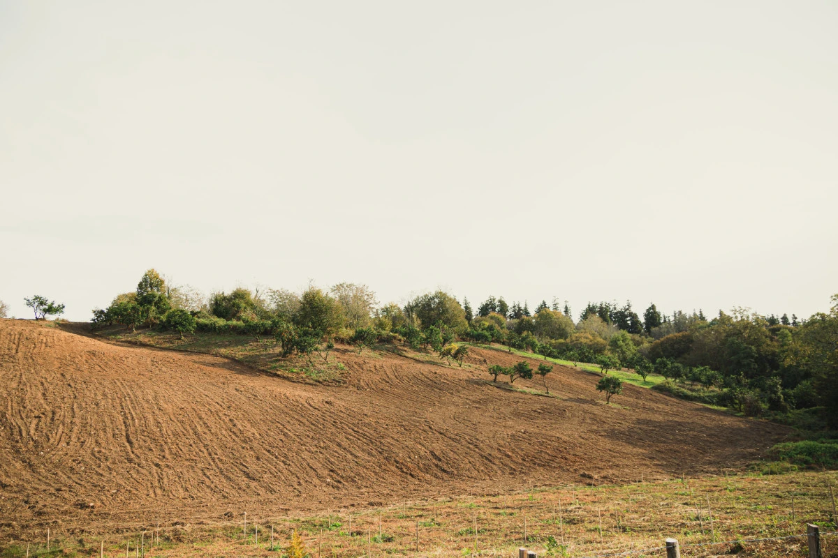 Территория неровная, а в середине будто бы карьер, и на склонах тоже растут деревья. Но виды открываются потрясающие. Бескрайние зелёно-рыжие поля на фоне горного снежного хребта. София сказала: «Чтобы лучше всего прочувствовать жизнь мандаринов, нужно идти пешком». И мы прогулялись.