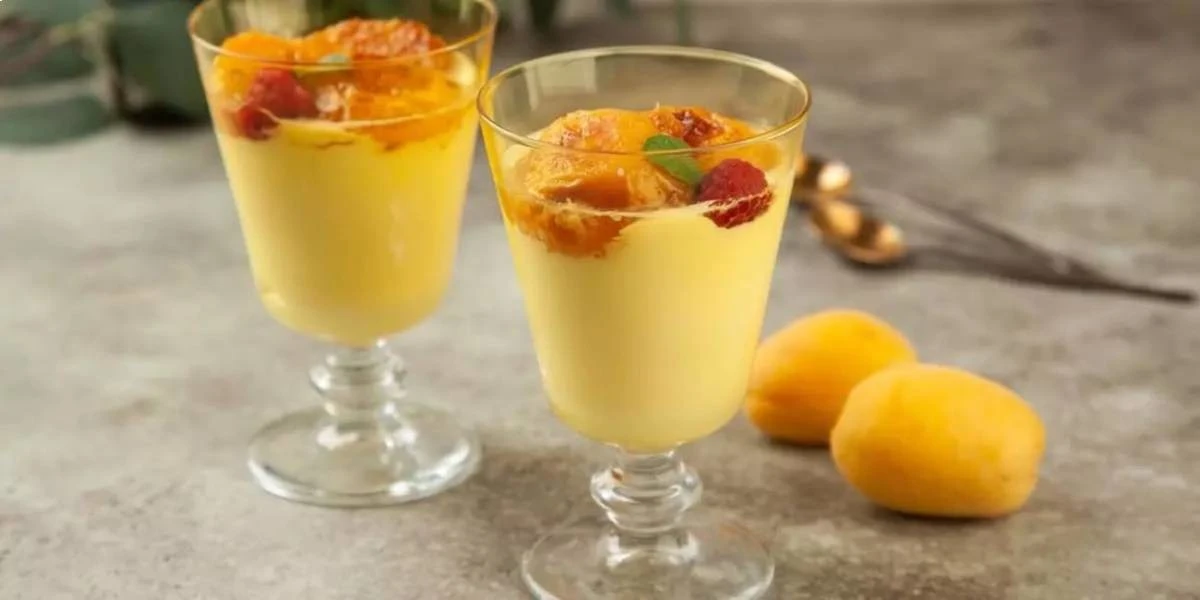 Десерт с карамельными абрикосами