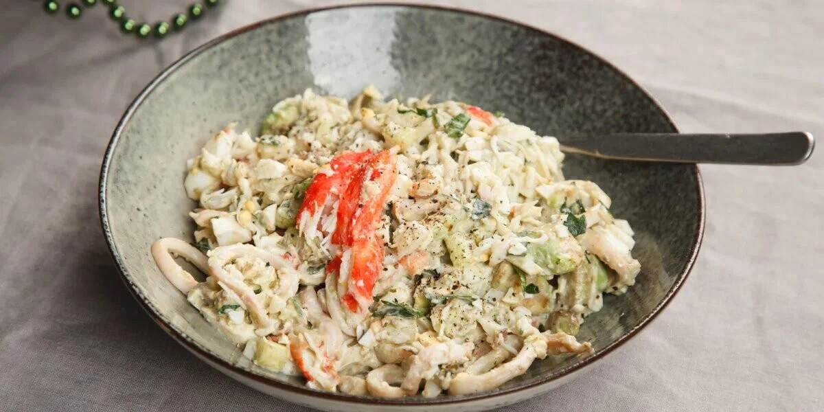 Крабовый салат с кальмаром и авокадо