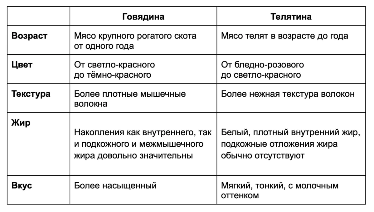 Говядина и телятина — мясо животных одного вида, но разница между продуктами ощутимая. Давайте разбираться, в чём она состоит.