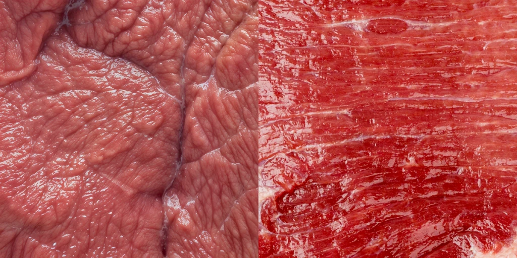 Несмотря на то, что и говядина, и телятина — это красное мясо, первая значительно темнее по цвету из-за высокого содержания миоглобина и, соответственно, железа.
