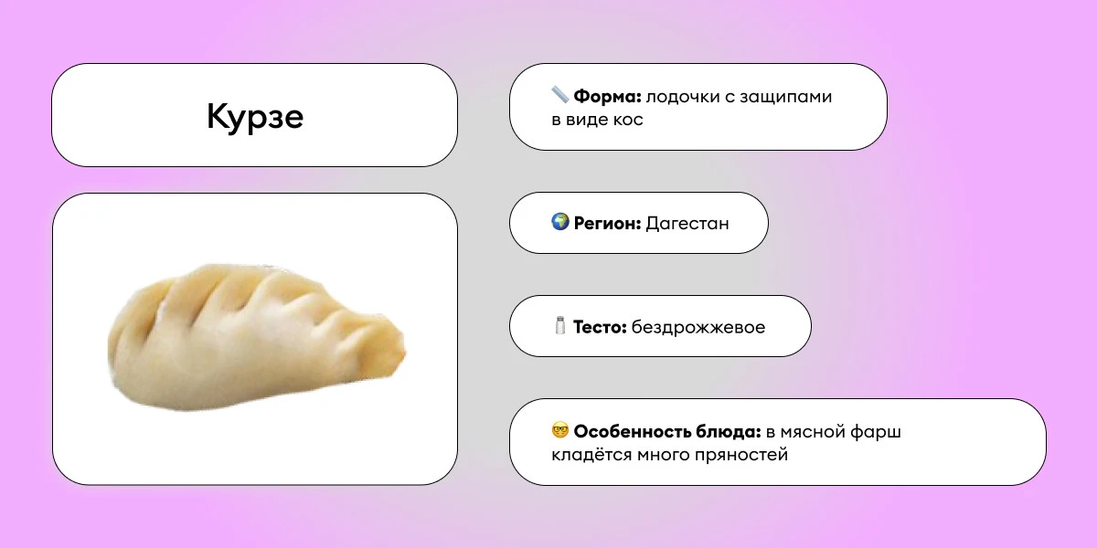 Дагестанский вариант пельменей. Их отличает нежное тесто и обильная мясная начинка. Однако в Дагестане многие хозяйки добавляют в курзе ещё и особый ингредиент — ханс, то есть кисловатую молочную сыворотку.