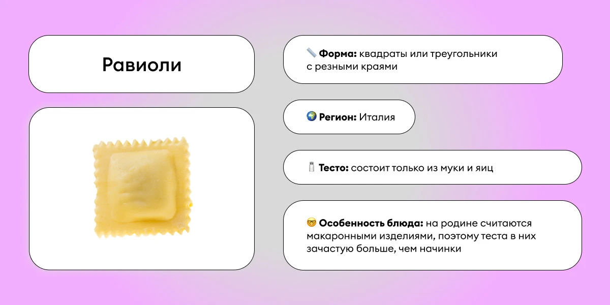 Мы воспринимаем их как пельмени, хотя на исторической родине равиоли это всё-таки паста. Отсюда и проблема: многим в России кажется, что в блюде слишком много теста и крайне мало начинки. Но таков рецепт, ничего тут не поделаешь.
