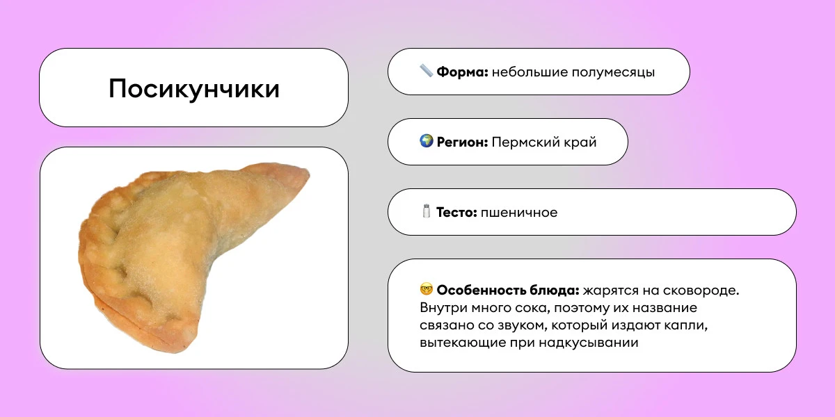 Смешное название сочных и маленьких пельменей, популярных на Урале. Их жарят на сковороде, и при укусе они брызгаются соком — отсюда и название.