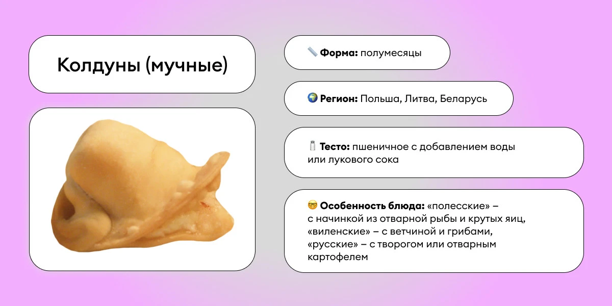 Не столько магия, сколько уют белорусско-польско-литовской кухни. Как и вареники, могут быть и главным сытным блюдом с начинкой из мяса, овощей, рыбы или грибов с ветчиной, так и десертом с творогом, черникой, вишней или сливой. А ещё колдуны — это картофельные драники с мясом. Смотрите, не перепутайте.