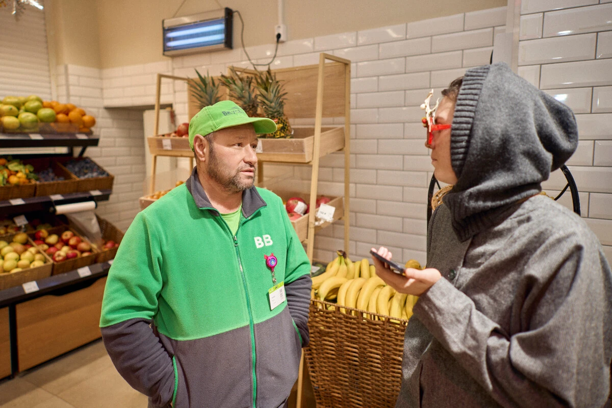 — А вы постоянный покупатель? — спрашиваю я у девушки. — Мы репортёры из ВкусВилла.
