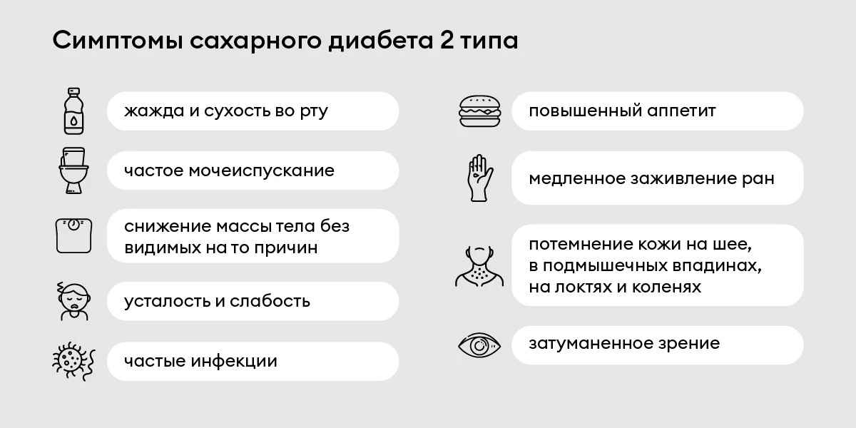 Симптомы сахарного диабета 2-го типа