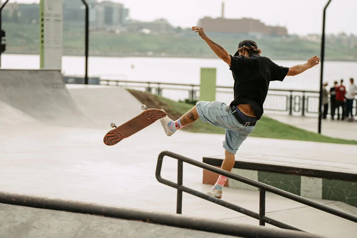 В конце набережной, у моста Миллениум, находится «Урам» — самый большой экстрим-парк в России. На открытом пространстве расположены скейт-парк, памп-трек и площадки для стритбола, в крытом комплексе — бетонный боул, стрит-плаза, эйр-парк. Здесь есть школа экстремальных видов спорта, а кататься можно на собственном оборудовании или арендованном.