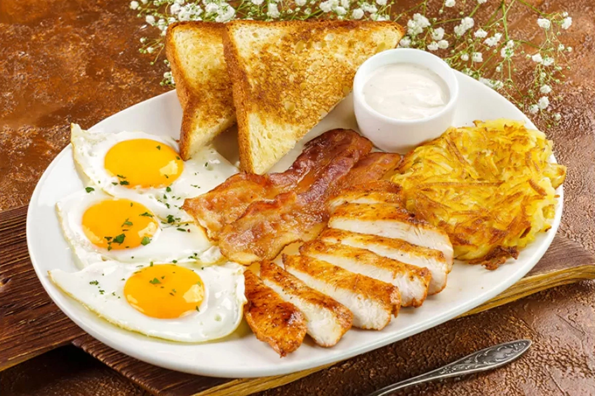 Кафе этой сети расположены в разных частях города, и здесь всегда можно найти место. В меню практически все известные нам варианты завтраков: каши, блинчики и панкейки, блюда из яиц и из творога, вареники, сэндвичи, а ещё внушительный выбор комплексных завтраков — например, куриное филе на гриле и глазунья или омлет и сёмга.