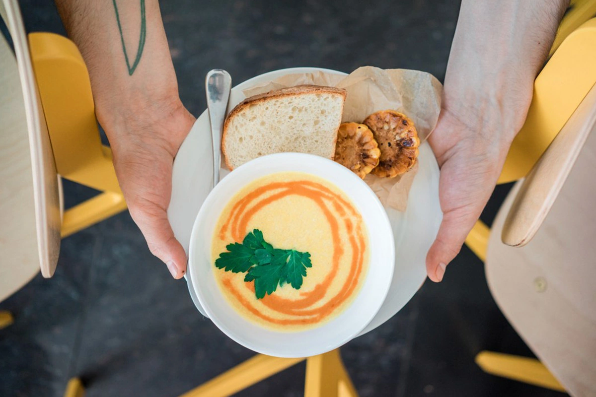 «Сливочный скрэмбл с креветками — то, за чем тебе обязательно нужно забежать в это уютное кафе. При этом персонал, интерьер и музыка обладают особенным, собственным вайбом».