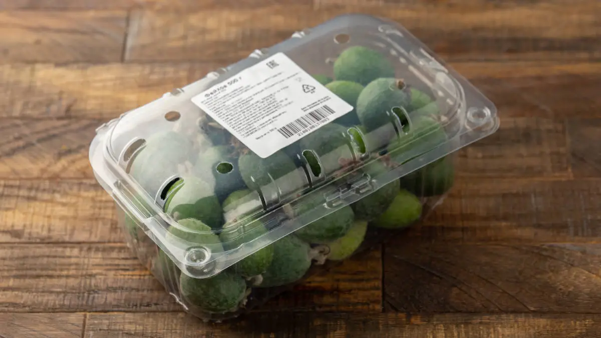 Хорошая фейхоа — относительно крупная и мягкая. Но поскольку плоды в принципе достаточно мелкие — 2-5 см в длину — в одной упаковке они могут быть разной степени спелости. Главное — посмотрите, чтобы на зелёных ягодах не было тёмных пятен, плесени.