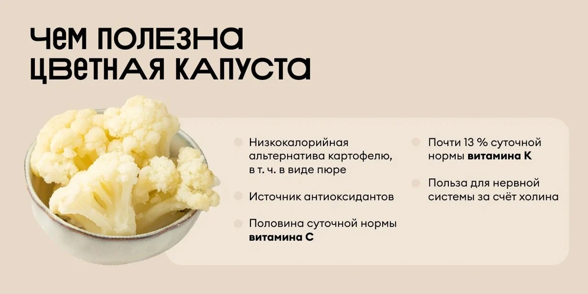 А ещё из варёной цветной капусты получается отличное пюре, которым можно заменить картофельное.