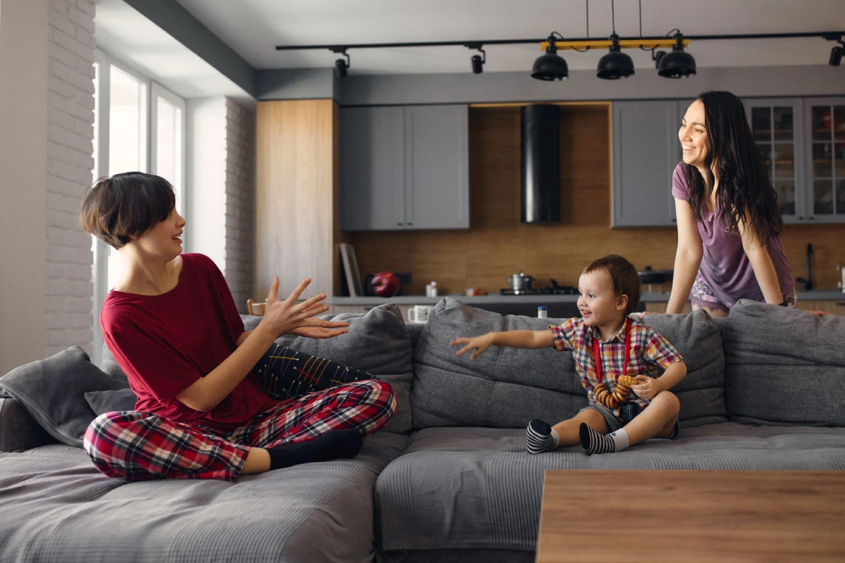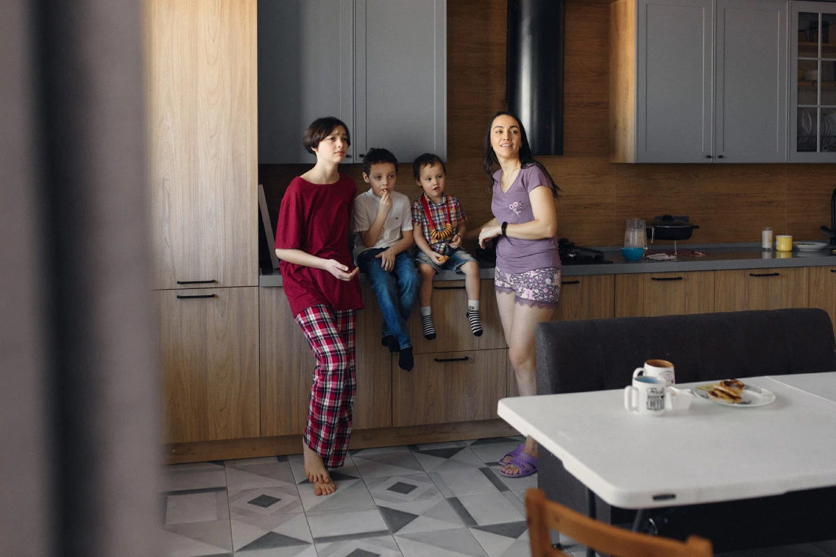 Первым утром поднимается Феликс и всех будит, он говорит: «Утро! Мама смотри в окно, пора вставать!». За ним встаю и я, иду готовить завтрак. Чуть позже подключаются муж и Лавр, а потом уже последняя встаёт Ева.