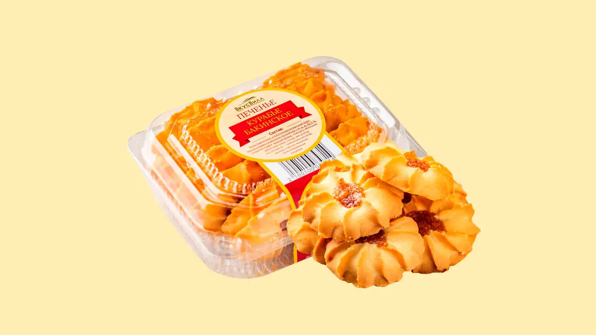 Песочное печенье с яблочным повидлом порадует всех ностальгирующих по детству. А состав у него ещё проще, чем у предыдущего десерта. Наше курабье сделано из пшеничной муки, сливочного масла, куриного яйца, яблочного повидла, сахарной пудры и ванили. Отлично подойдёт для чаепития в кругу семьи.