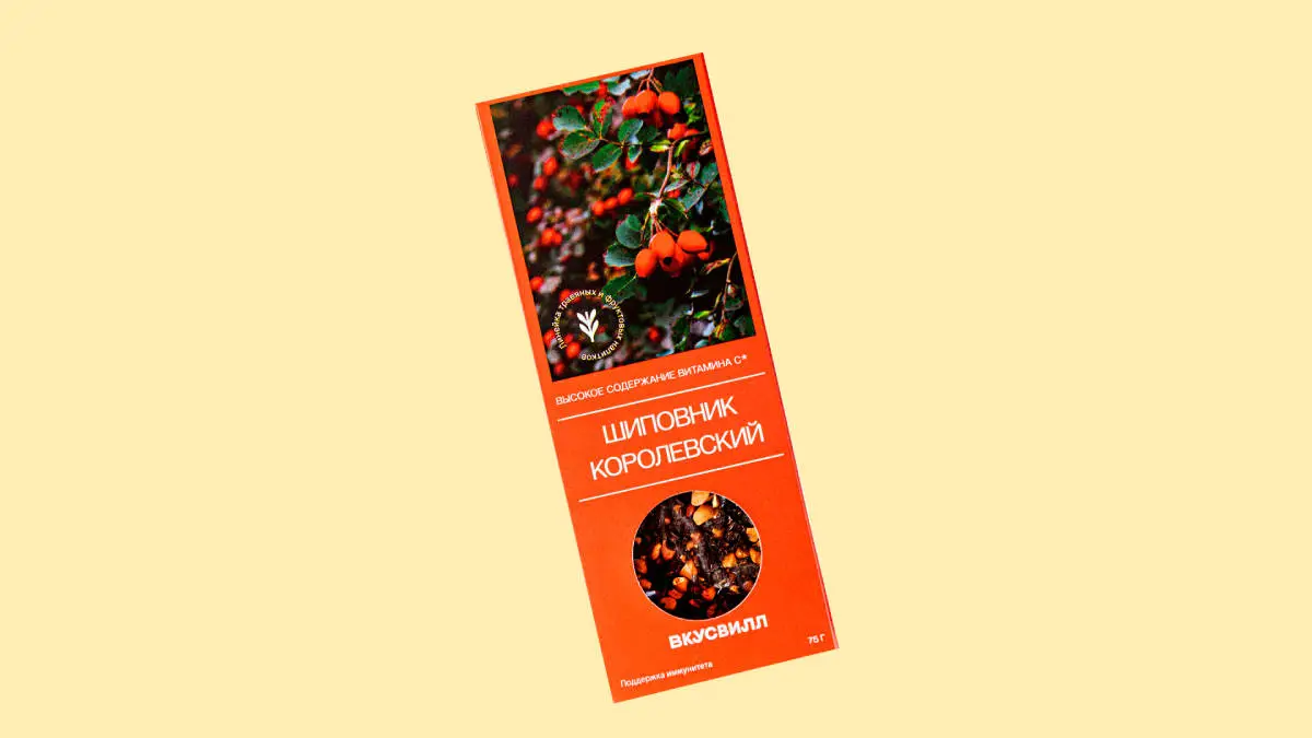 Третий в подборке — тёплый осенний напиток. В его составе лишь один компонент: плоды шиповника, собранные в высокогорной местности. Чтобы их было проще заваривать, совсем как обычный чай, плоды прошли особую термическую обработку.