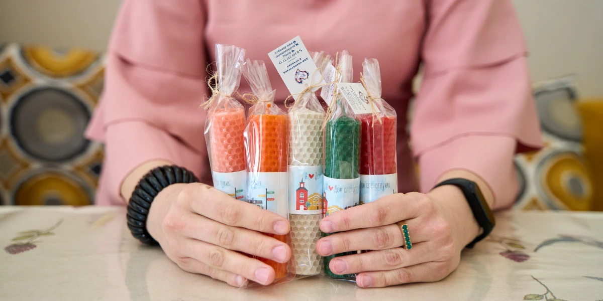 «Я делала онлайн-заказ, положила в корзину носки. Просто нужны были носки, о Полке я ещё не знала. Уже после покупки стала интересоваться товарами этой категории, захотелось поддерживать фонды и покупать необычные вещи со своей историей», — делится Татьяна. Сейчас она приобретает открытки, хочет собрать коллекцию. Открытки делает другой фонд. А от «Дома слепоглухих» Татьяна покупает свечи.