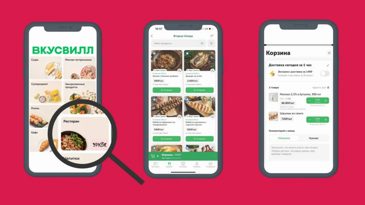Мы даём возможность заказать всё необходимое в одном приложении, ресторанные блюда и товары ВкусВилл привозит один курьер — это просто для покупателя и экономит его время. При этом условия доставки никак не меняются: стандартно бесплатная, без минимальной суммы заказа, в пределах 1 или 2 часов в зависимости от адреса».