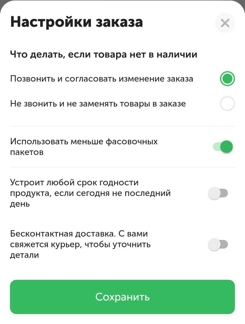 Мы выбираем продукты для заказа так, как делали бы это для себя. Продавцы могут позвонить вам, если какого-то товара не окажется в наличии, и предложить замену. Или если сроки годности подходят к концу, чтобы уточнить, подходит ли вам такой продукт.