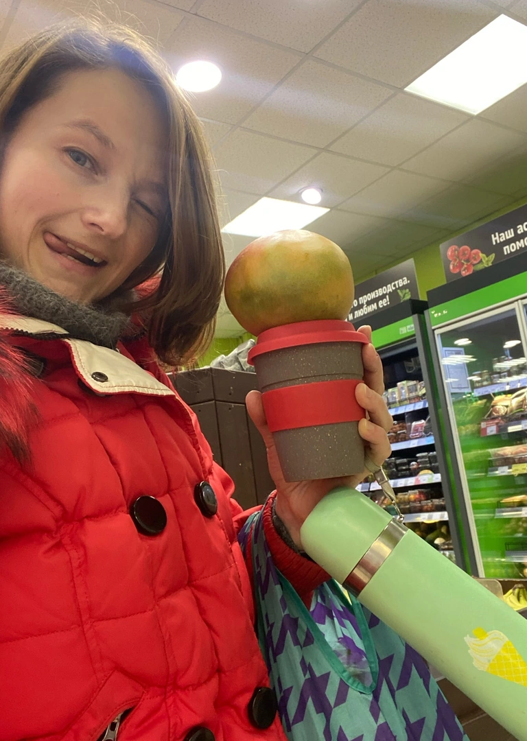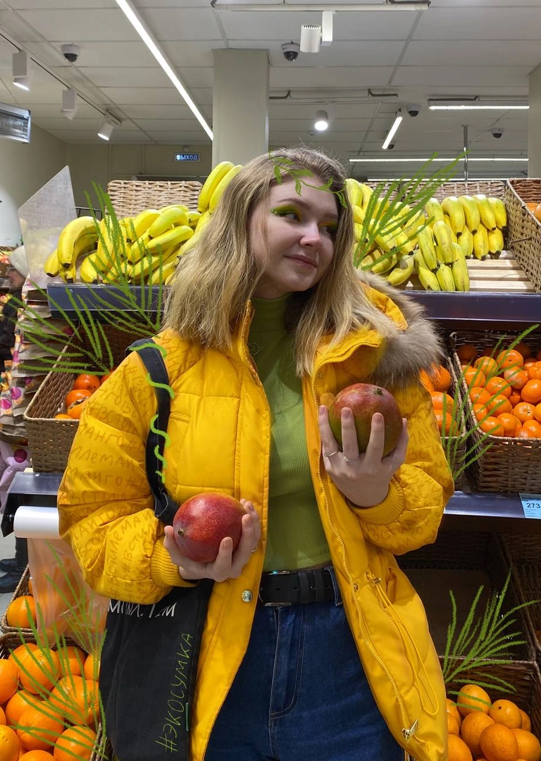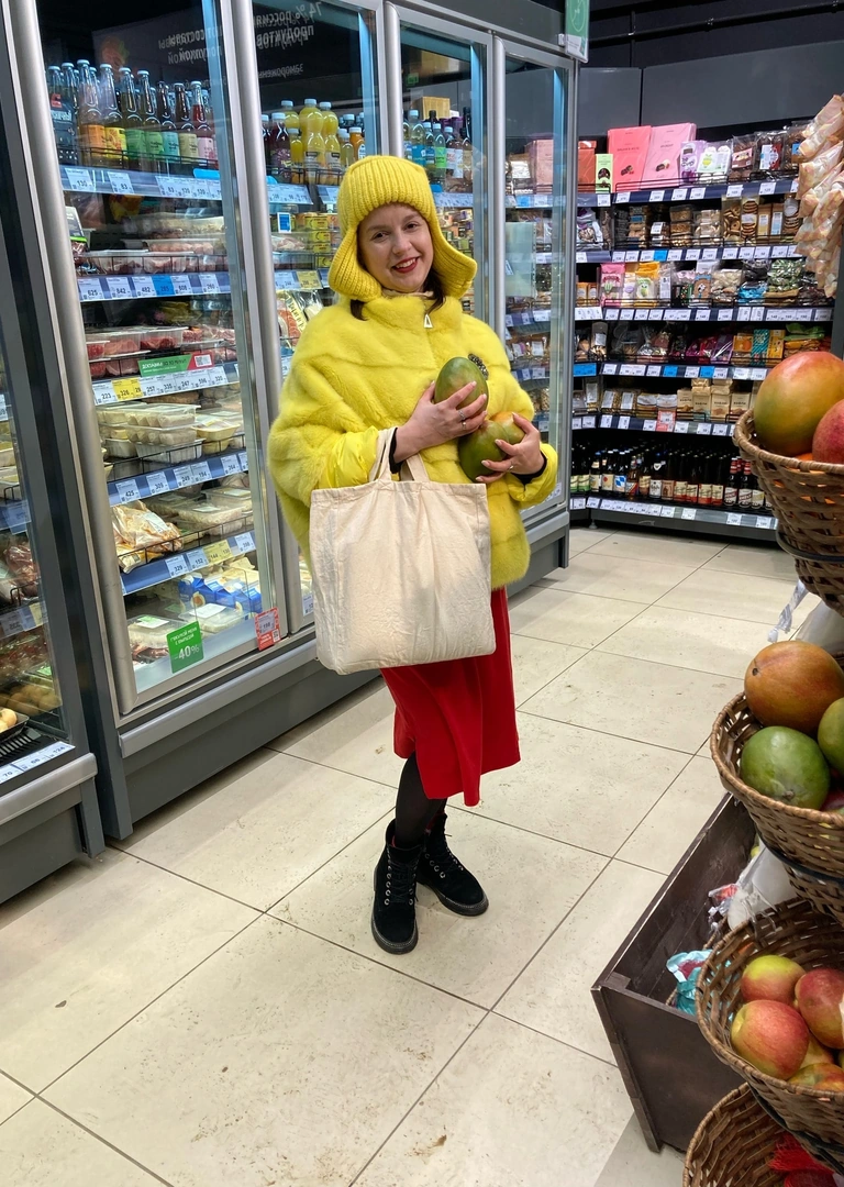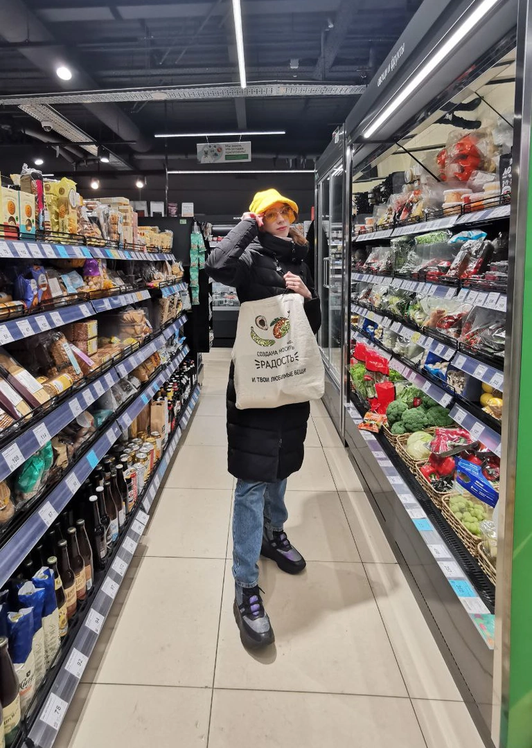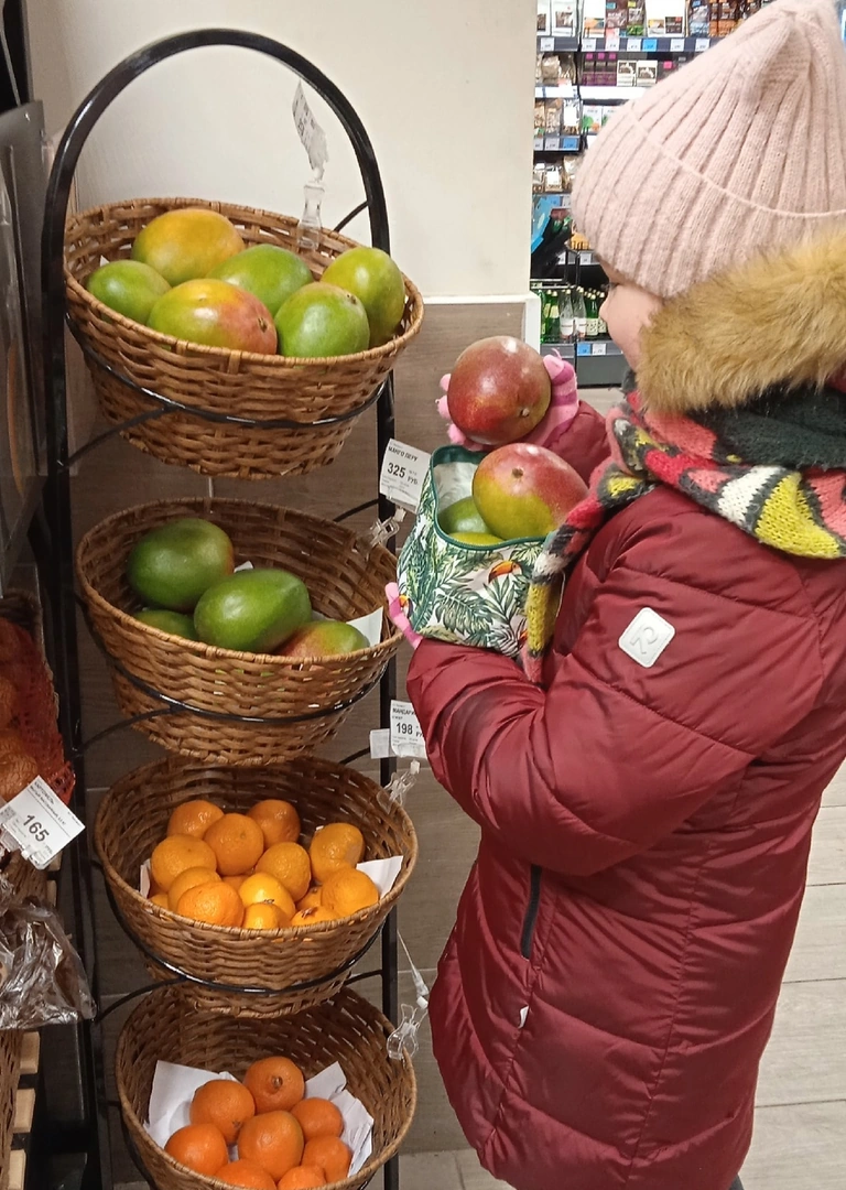 - Сфотографируйтесь в магазине с экотарой и элементом манго-лука.