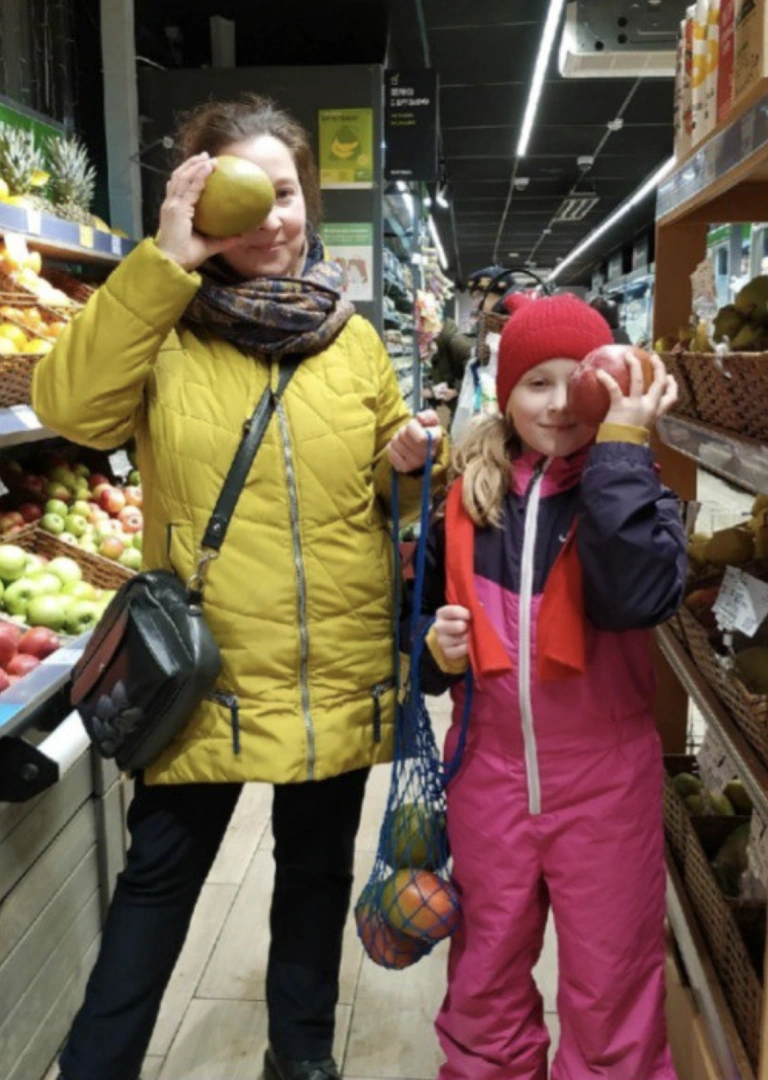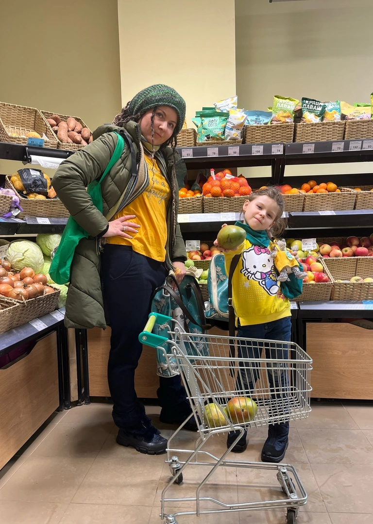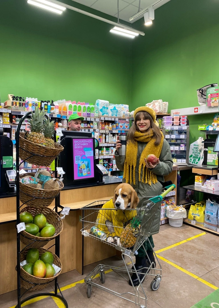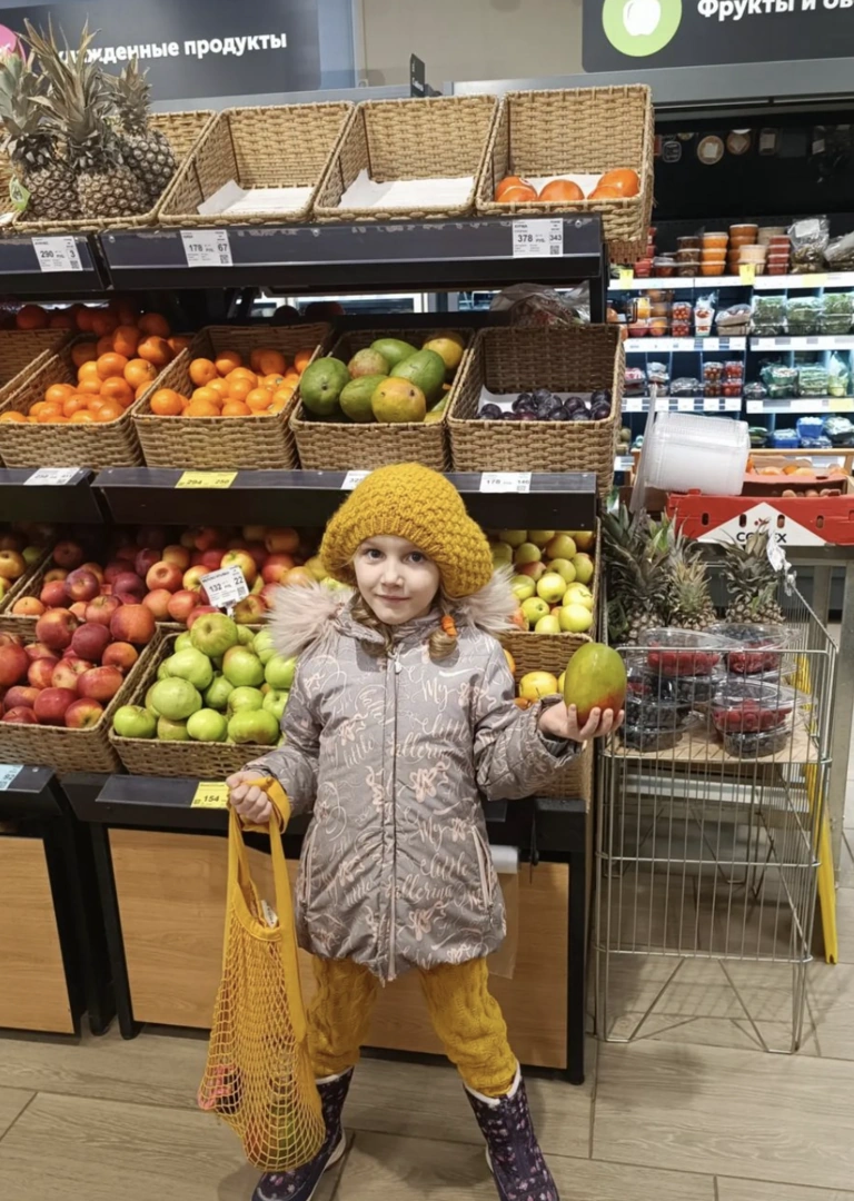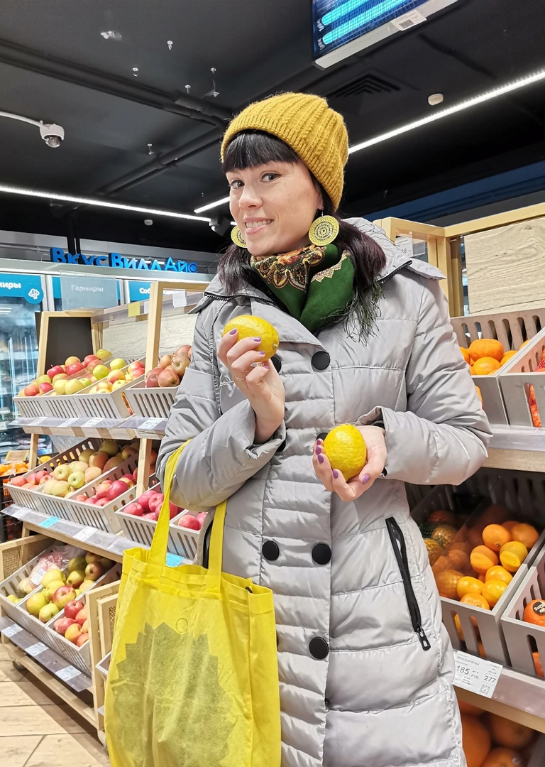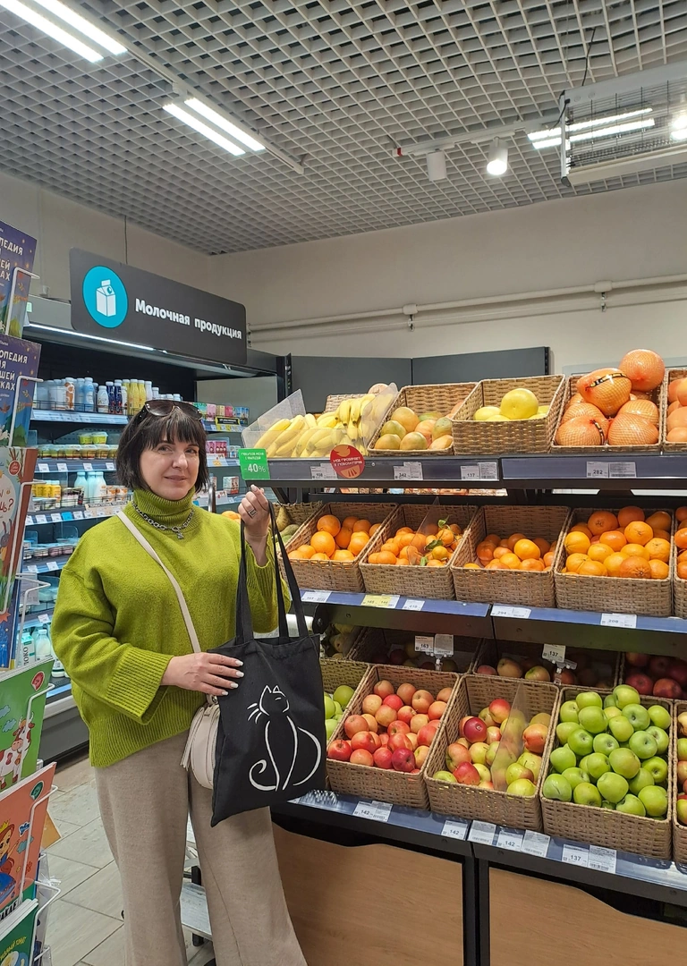 - Сфотографируйтесь в магазине с экотарой и элементом манго-лука.