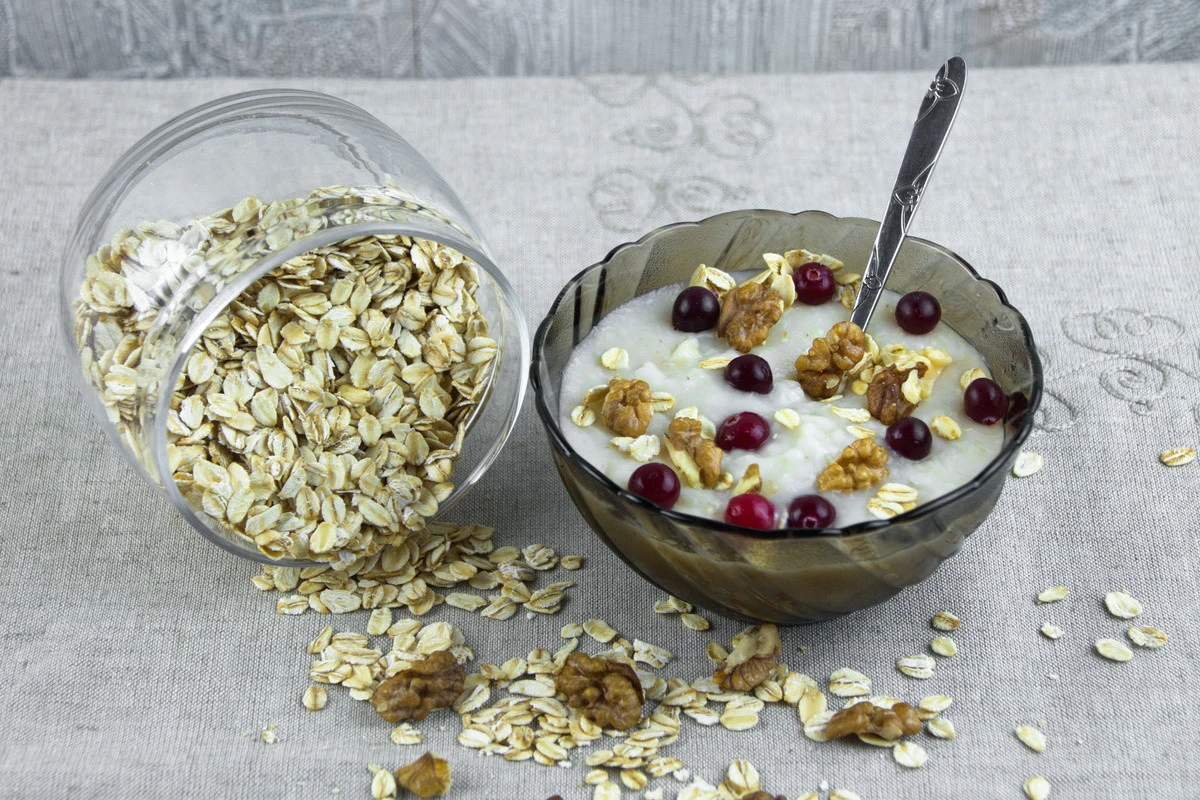 Овсяный кисель с ягодами клюквы и грецким орехом © Наталия Кузнецова / Фотобанк Лори