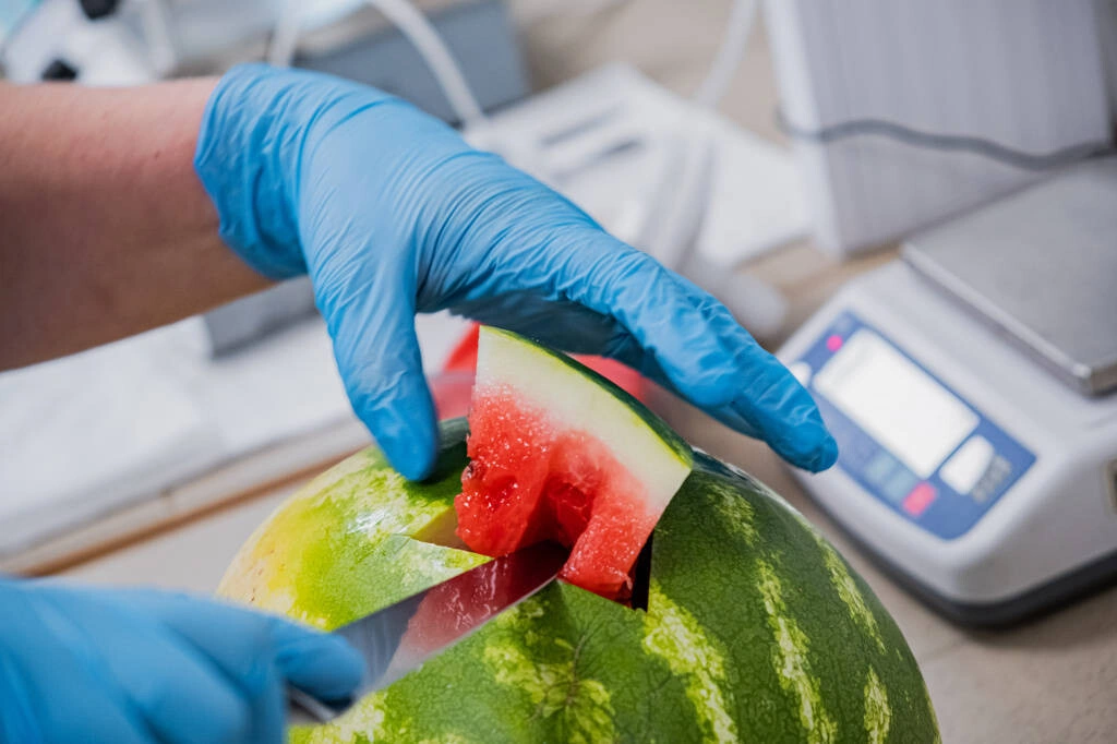 В нашей лаборатории проверки арбузов проводят по всем правилам. Продукцию каждого поставщика берут на анализ раз в неделю. При этом ягоды выбирают наугад — в лабораторию едет именно то, что поступило для продажи.
