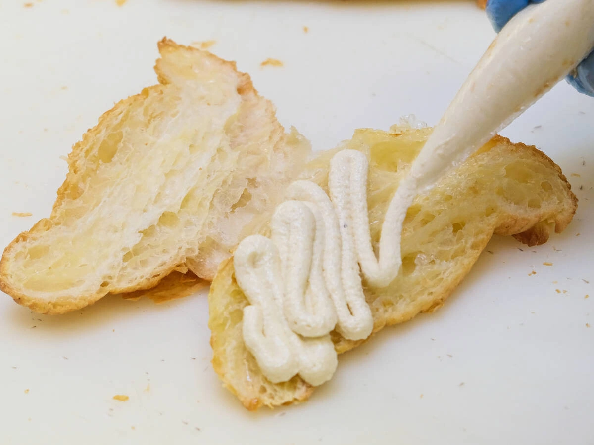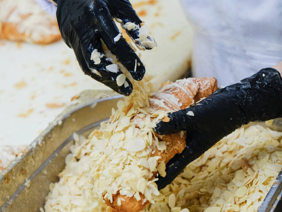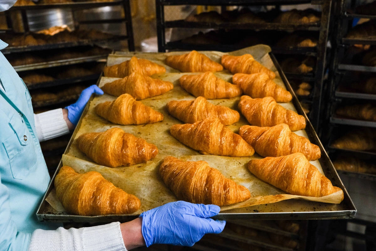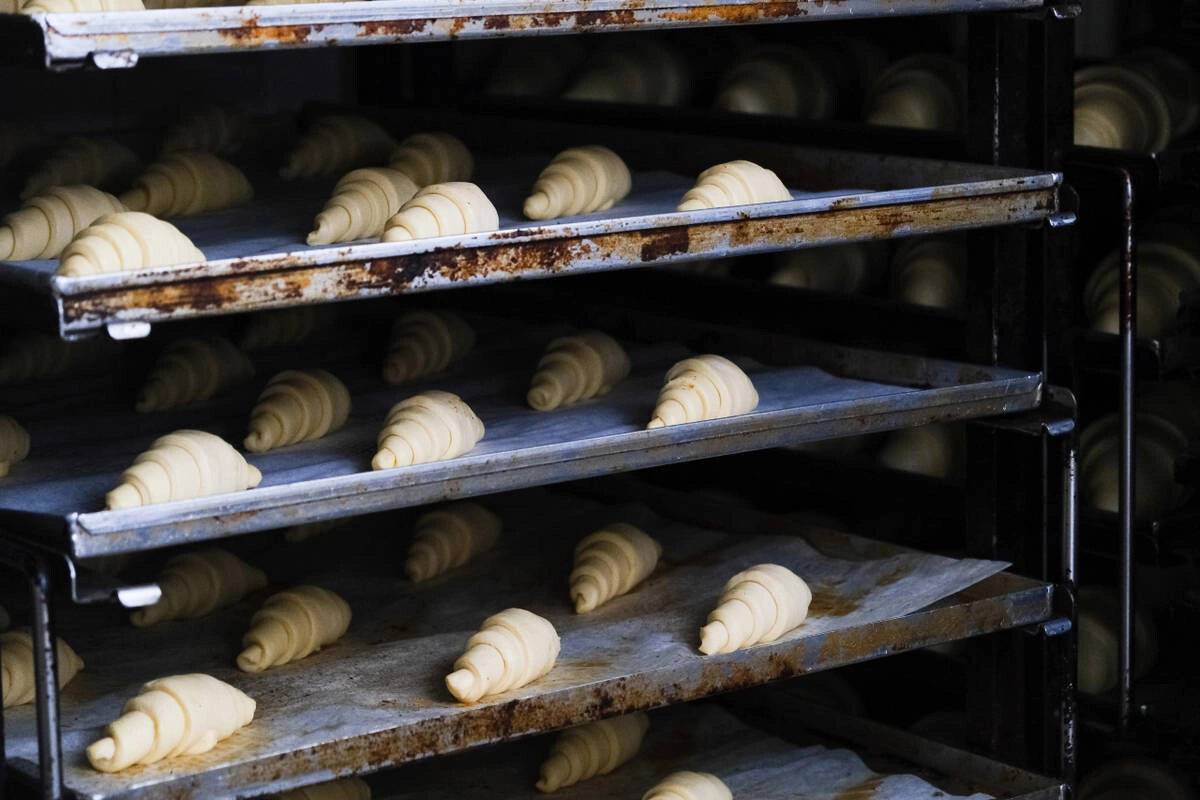 На производстве круассаны изготавливают вручную традиционным способом: чтобы получился идеальный круассан, тесто бродит в холодильной камере 12 часов, проходит процесс ферментации и насыщается ароматами.