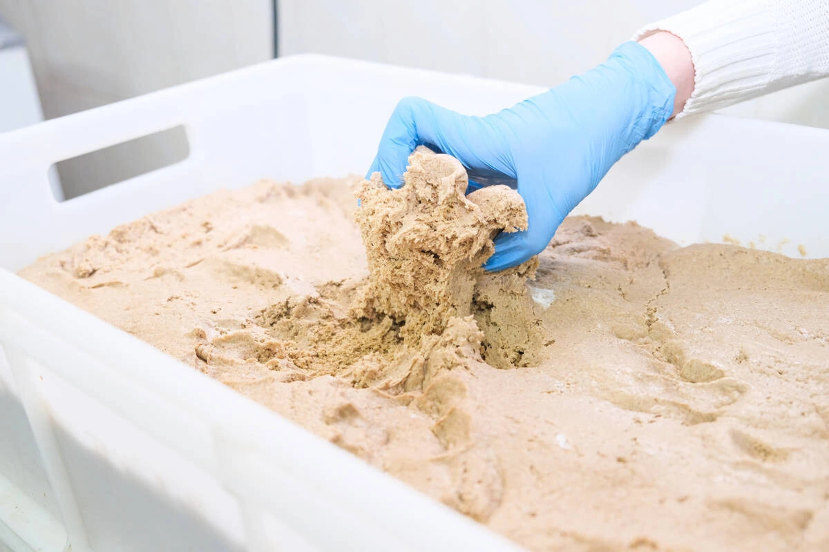 – Ржаная закваска – самая неприхотливая из всех заквасок. Мы готовим её из обдирной ржаной муки и воды. Чтобы получить продукт стабильного качества, мы тщательно следим за кислотностью закваски и её подъёмной силой. Это очень важно для объёма и вкуса готового изделия.