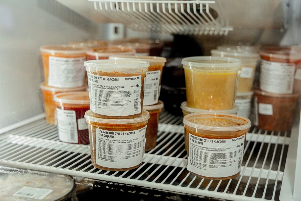 Простые блюда, такие как каши, омлеты и салаты, мы готовим здесь же, на кухнях дарксторов. Сложные блюда — супы и вторые блюда — делают и привозят нам в замороженном виде поставщики ВкусВилла, а мы уже в профессиональных микроволновых печах доводим еду до кулинарной готовности. Какие-то рецепты блюд поставщики адаптировали для нашей кухни, другие создали вместе с нами с нуля.