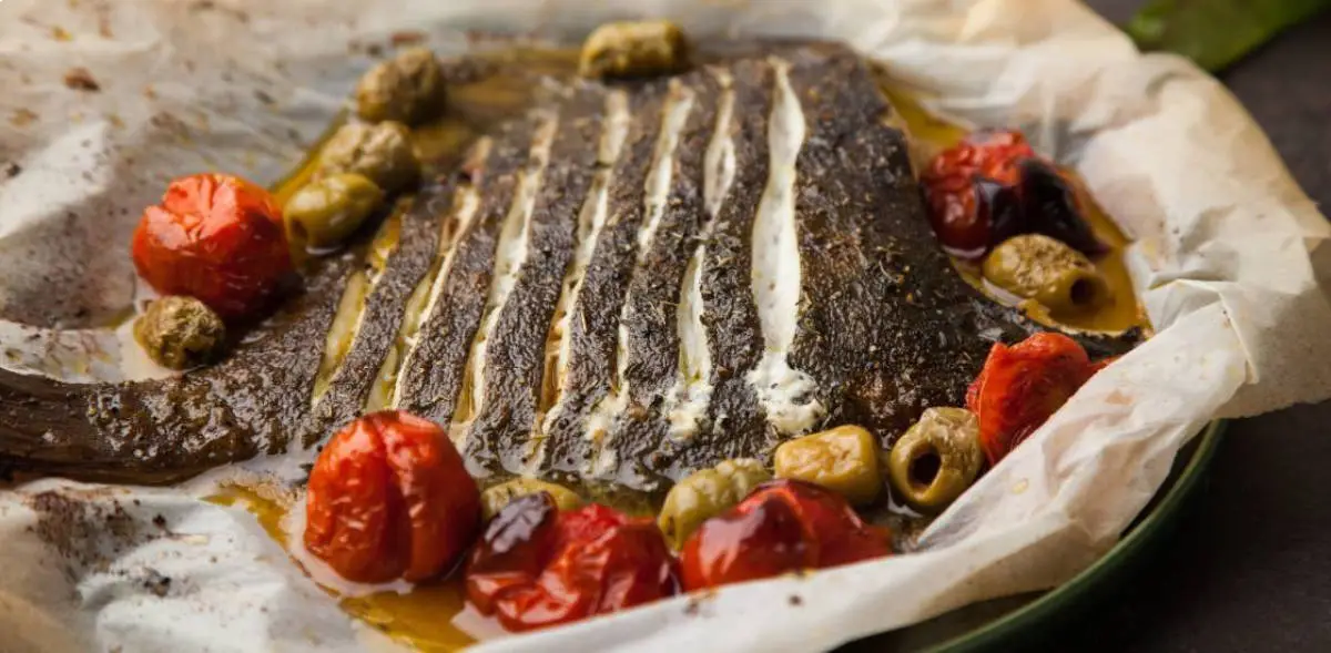 За счёт своей небольшой толщины камбала очень быстро готовится, а выглядит очень нарядно.