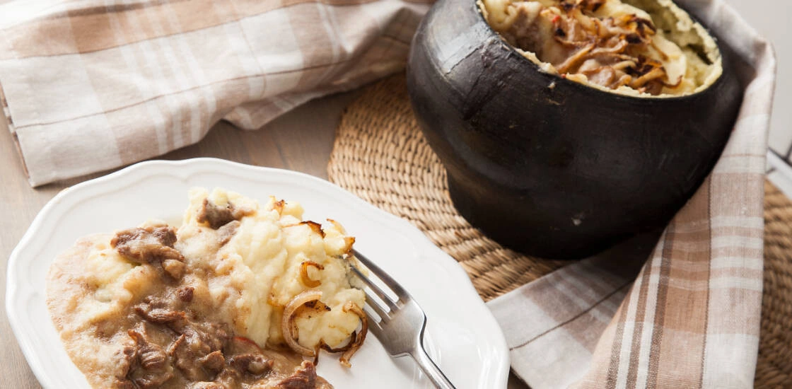 Говядина в горшочке с картофельным пюре