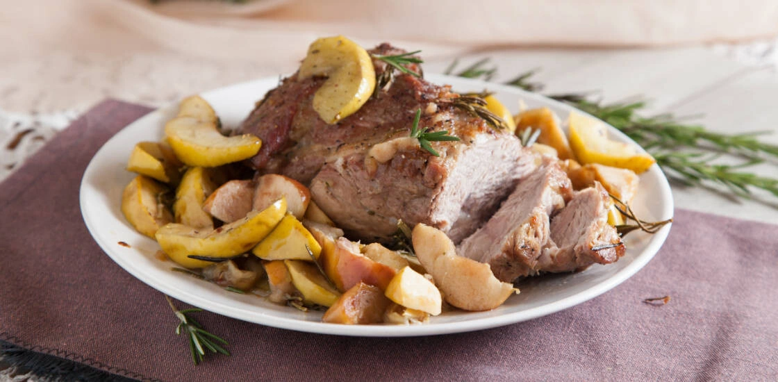 Свинина с розмарином, яблоками и сидром