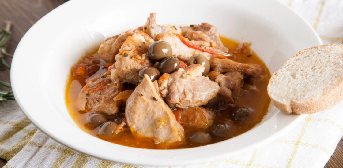 Для этого блюда не жалейте оливкового масла и вина, мясо получается очень нежным, а соус восхитительно ароматным! Вкуснее всего есть со свежей чиабаттой, обмакивая её в соус.