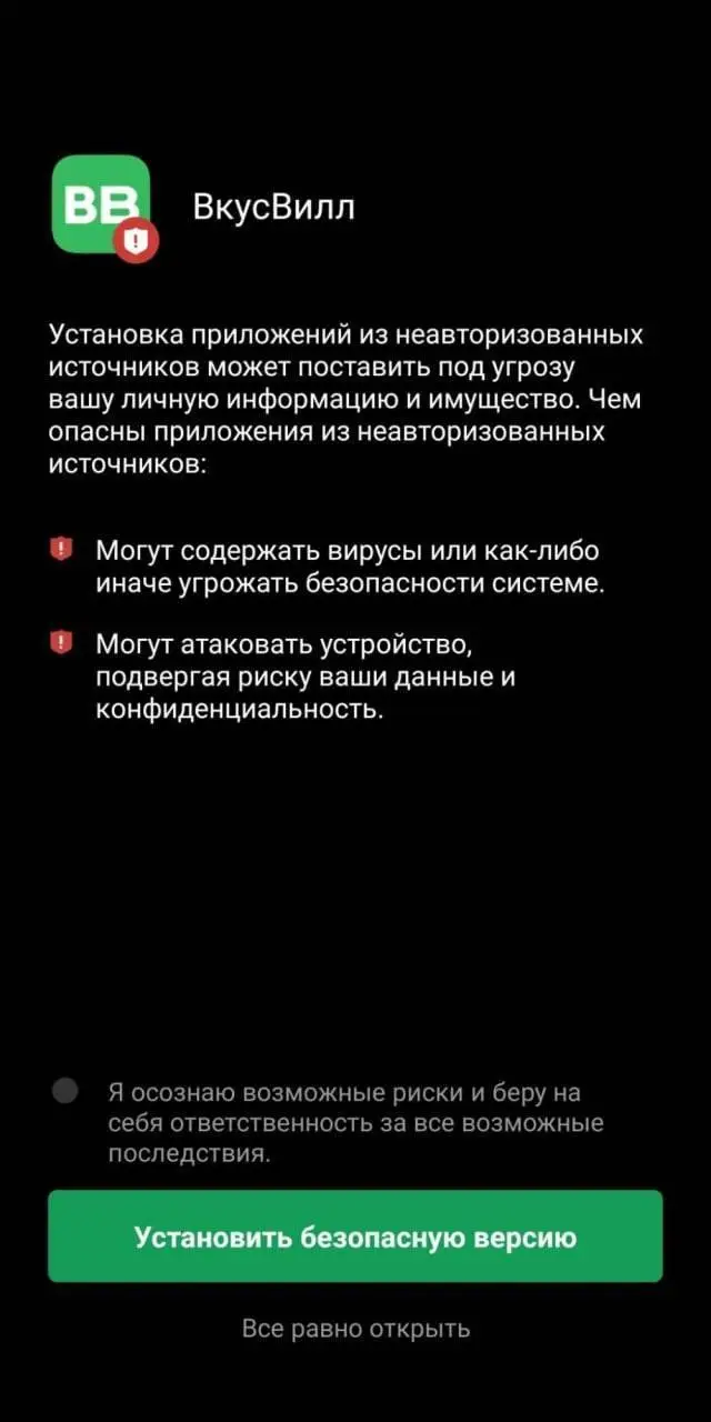 Если вы хотите установить или обновить мобильное приложение ВкусВилл, а сервис Google Play недоступен, воспользуйтесь нашей инструкцией. Приложение для смартфонов с операционной системой Android можно скачать напрямую с сайта ВкусВилла.