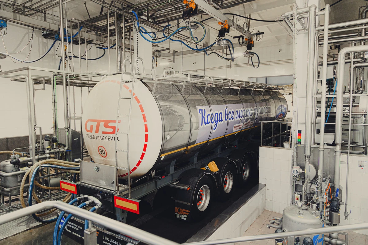 Молоковоз, в котором молоко приезжает на завод