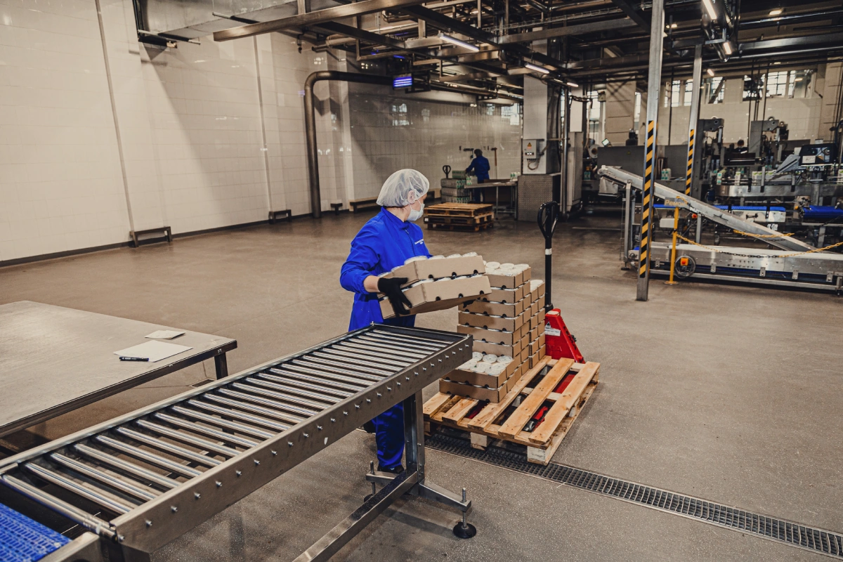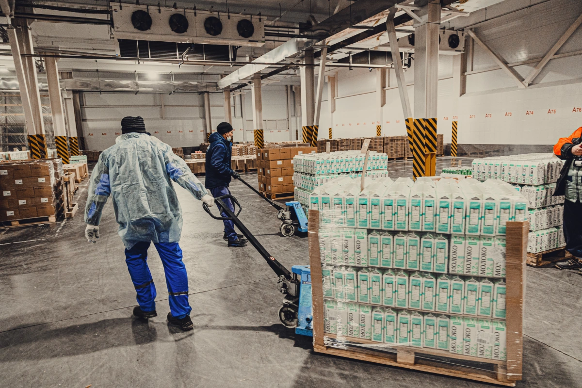 Когда молоко «нарядилось», сотрудники завода забирают его с конвейера и везут на склад. Оттуда продукт отправляют в магазины.