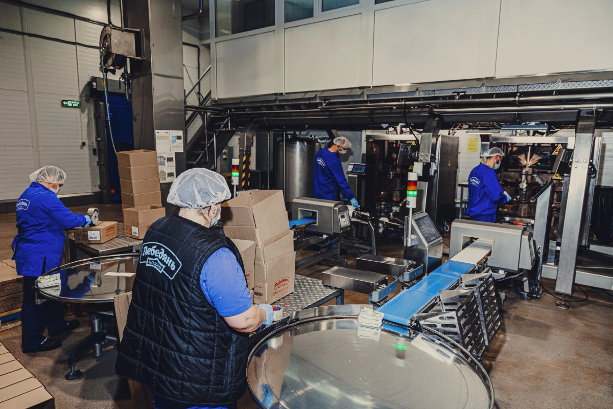 Нашим проводником стал Александр Викторович Комаров, исполнительный директор завода. Он в пищевой промышленности 30 лет — знает, если не всё, то очень многое и рассказывает увлекательно. Начал карьеру оператором технологической линии на производстве детского питания, дорос до начальника смены, потом цеха, потом и всего производства. Затем он был директором Липецкого пищевого комбината, позже — молочного комбината в Белгородской области. Там как раз делают знаменитую Алексеевскую сгущёнку — в синей упаковке с коровкой. Работал директором мясокомбината в Тамбове. И, сменив ещё один комбинат, занялся развитием «ЛебедяньМолока».