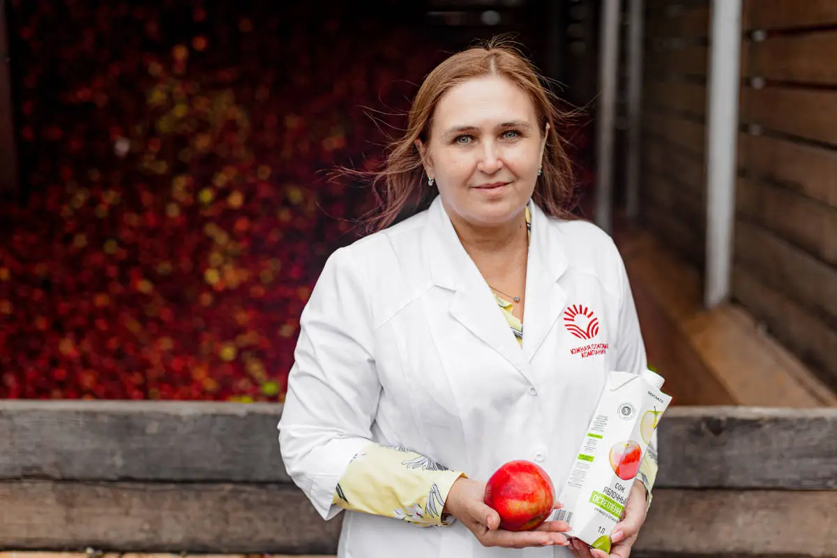 Экскурсовод съёмочной группы ВкусВилла Татьяна Рогова, начальник испытательного центра «Южной соковой компании»