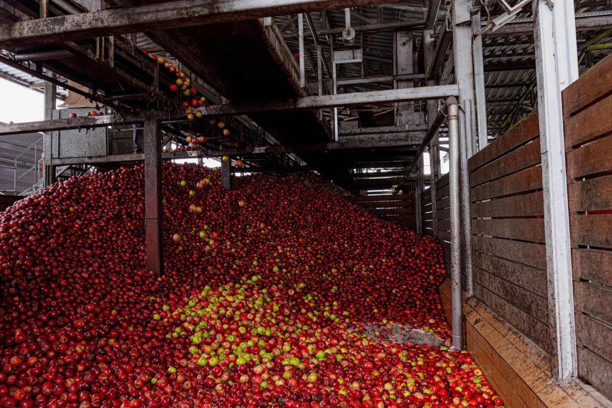 Порядка 450 тонн яблок в сутки перерабатывается на предприятии в Белореченске. Компания способна выпускать 240 миллионов литров сока в год.