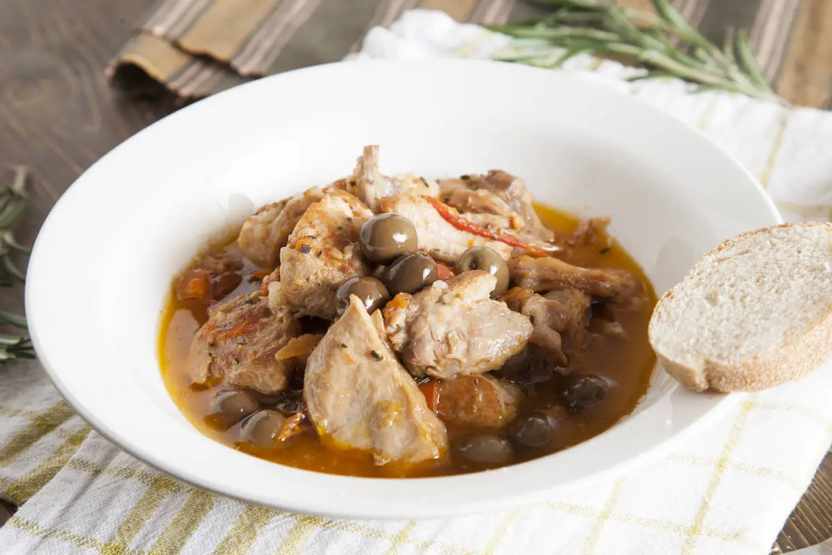 Для этого блюда не жалейте оливкового масла и вина, тогда мясо получится очень нежным, а соус восхитительно ароматным. Вкуснее всего есть итальянское рагу из кролика со свежей чиабаттой, обмакивая её в соус.