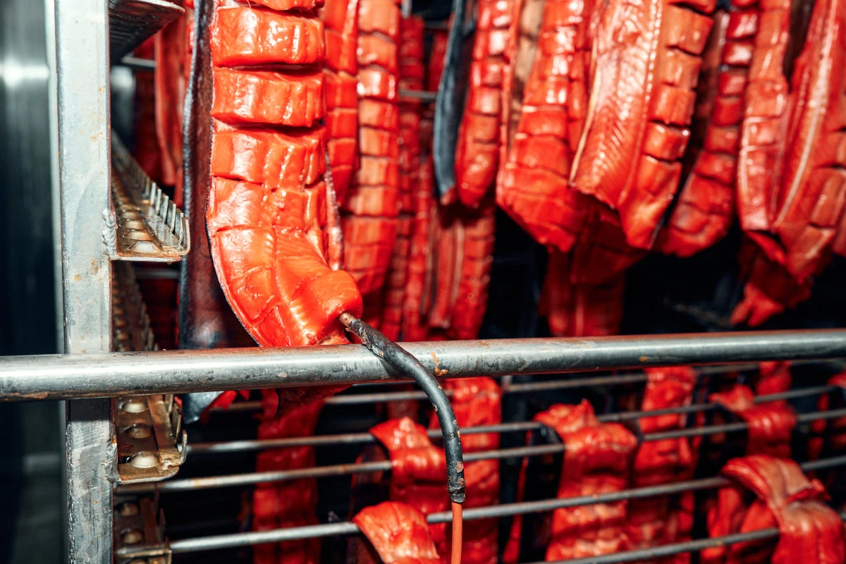 В камере горячего копчения рыбу подсушивают, задымляют и проваривают