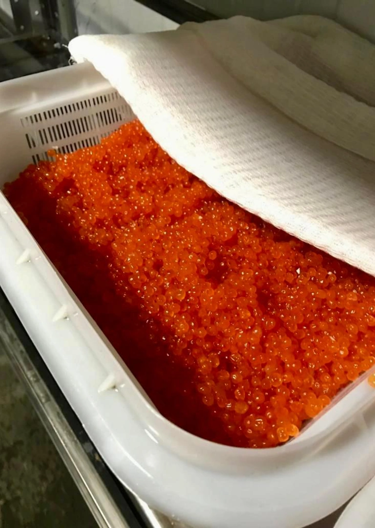 Рыбу на сторону не продают — всю используют в производстве. Промысел небольшой, за путину получается выловить и переработать порядка 200 тонн своей рыбы. Остальную закупают напрямую у рыбаков из соседнего предприятия. Из импортного сырья в ассортименте только тунец, марлин, масляная и осётр. К слову, осётр — это единственный вид рыбы в ассортименте, который является аквакультурой (то есть выращен в искусственных условиях).