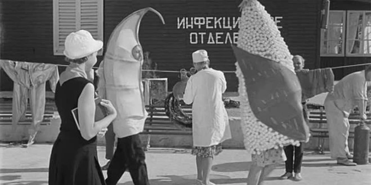 Разумеется, мы не можем упустить из виду легендарный фильм «Добро пожаловать, или Посторонним вход воспрещён». Здесь кукуруза занимает особое место, становится сатирической метафорой, указывает на хрущёвскую политику. В фильме действие разворачивается в летнем пионерском лагере с гениальным Евгением Евстигнеевым в роли товарища Дынина. Один из первых эпизодов — визит высокопоставленных гостей, ожидающих увидеть кукурузное поле. И дальше всё почти как у Гоголя.