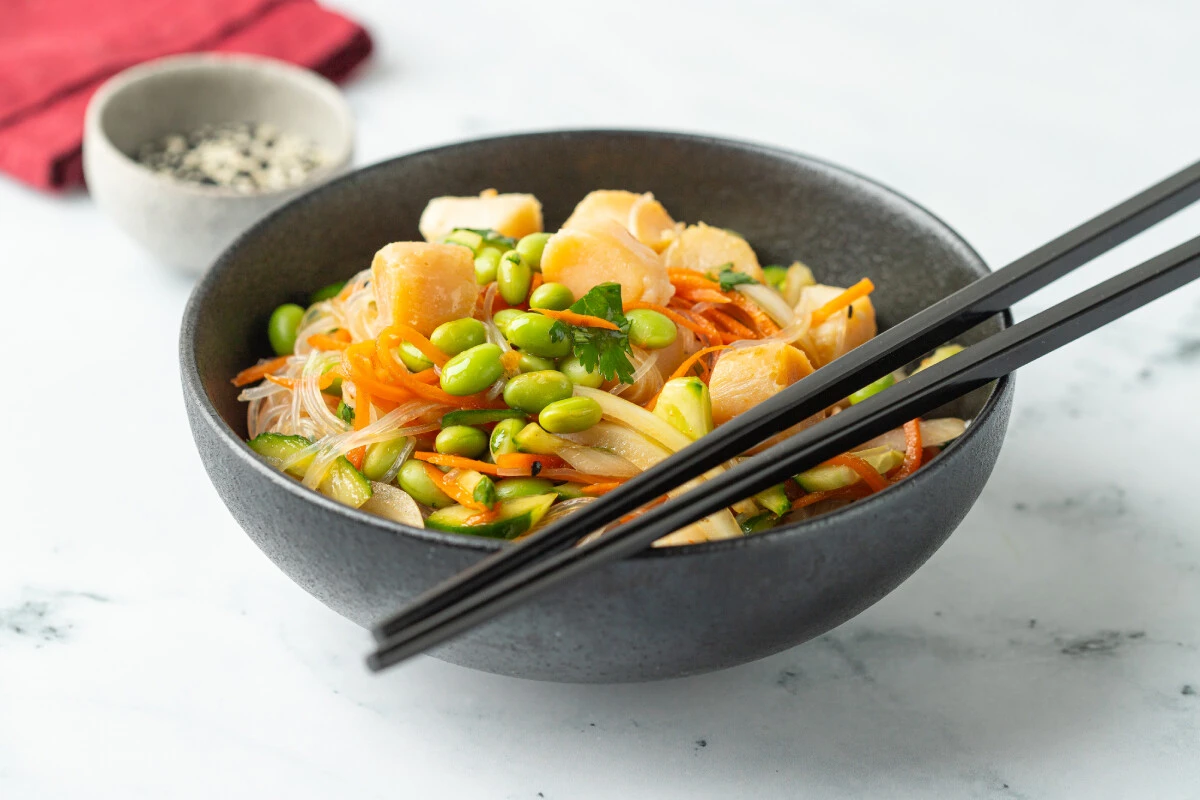 Азиатский салат с гребешком и фунчозой